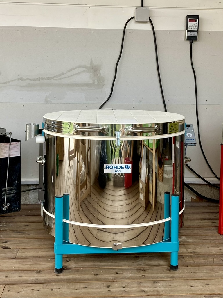 Un Atelier extérieur couvert (sous l’atelier intérieur), de 30m2, avec un four Rhodes récent de 140 litres.